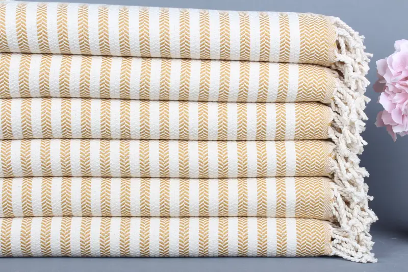 Organik Pamuk Türk Plaj Havlusu Hardal Şerit, 40x71 İnç