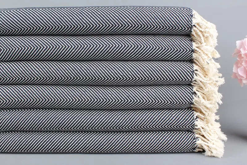 Türk Plaj Havlusu Organik Pamuk Lacivert Chevron, 40x71 İnç