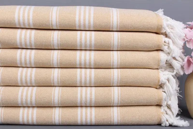 Kişiye Özel Nedime Hediye Havlusu Hardal Çizgili Peştemal, 40x71 İnç