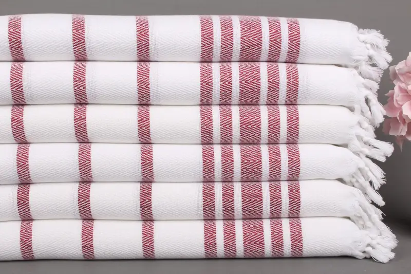 Askılı Mutfak Havlusu Bordo Şerit 24x36 İnç Organik Pamuk