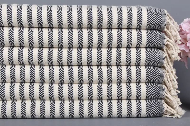Özel İşlemeli Lacivert Chevron Bulaşık Havlusu, 18x40 İnç