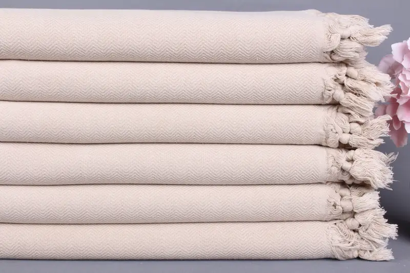 Kişiye Özel Organik Pamuk Plaj Havlusu Bej Balıksırtı 40x63 İnç