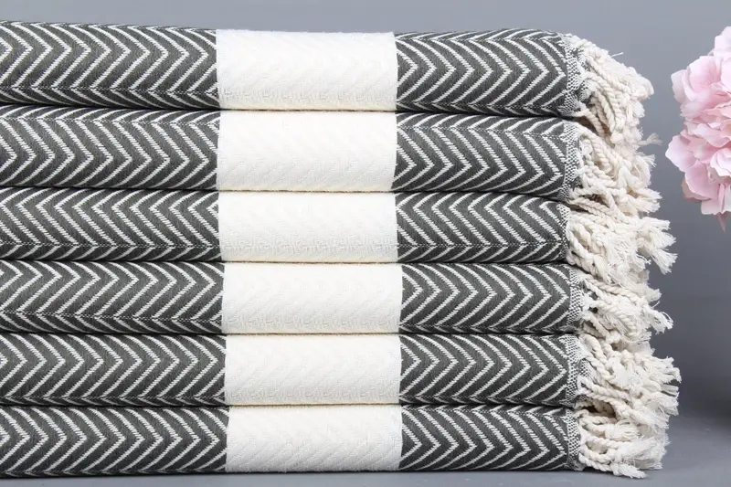 Türk Banyo Havlusu Koyu Haki Yeşil Chevron Peştemal, 40x71 İnç