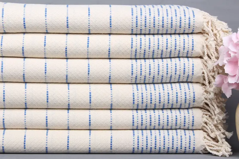 Monogramlı Türk Plaj Havlusu Parlamento Mavi, Bej, 38x71 İnç