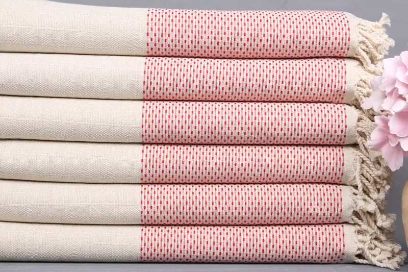 Türk Havlusu Plaj Organik Pamuk Kırmızı Bej, 40x71 İnç