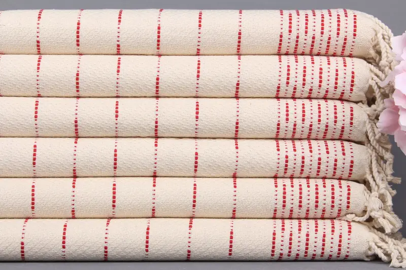 Özelleştirilmiş Organik Pamuklu El Havlusu Kırmızı Çizgili Bej, 18x36 İnç