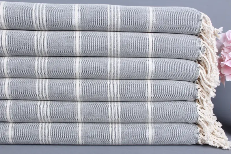 Kişiye Özel Nedime Hediye Havlusu, Koyu Gri Çizgili, 40x71 İnç