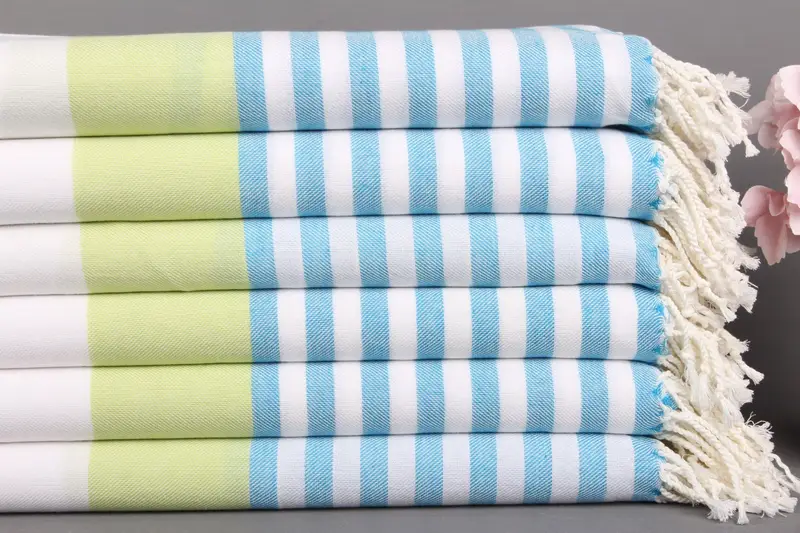 Banyo Havlusu Kişiye Özel Mavi-Fıstık Yeşili Çizgili Türk Pamuğu, 40x71 İnç