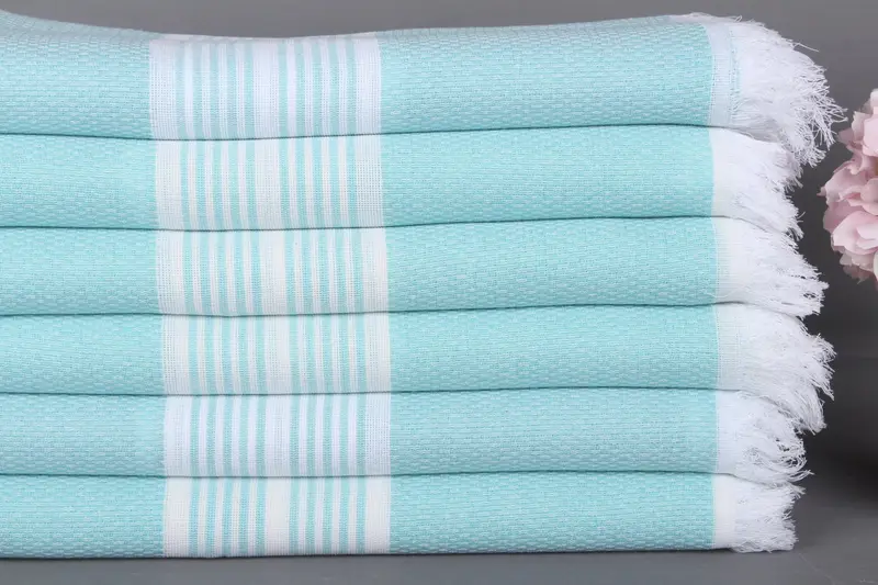 Monogramlı Türk Plaj Havlusu Organik Pamuk Nane, 40x71 İnç