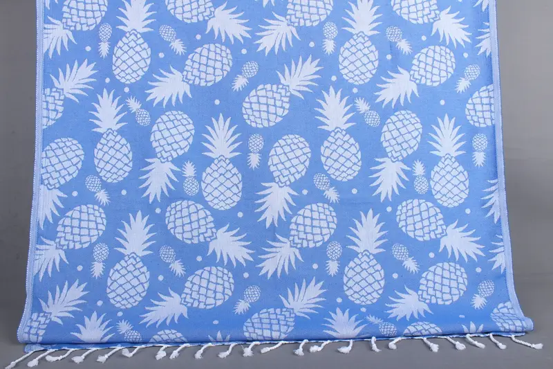 Ananas Desenli Sax Mavi Pamuk Havlu, 36x71 İnç
