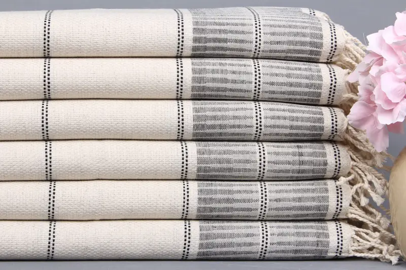 Saç Havlusu Türk Organik Pamuk Siyah ve Bej Çizgili, 20x40 İnç