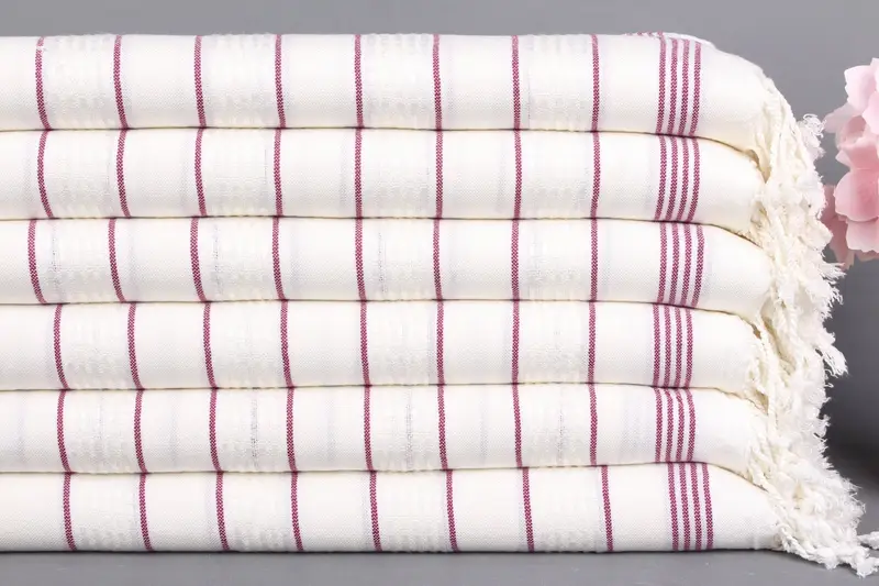 Kişiye Özel Türk Plaj Havlusu Organik Pamuk Mor Çizgili, 40x71 İnç