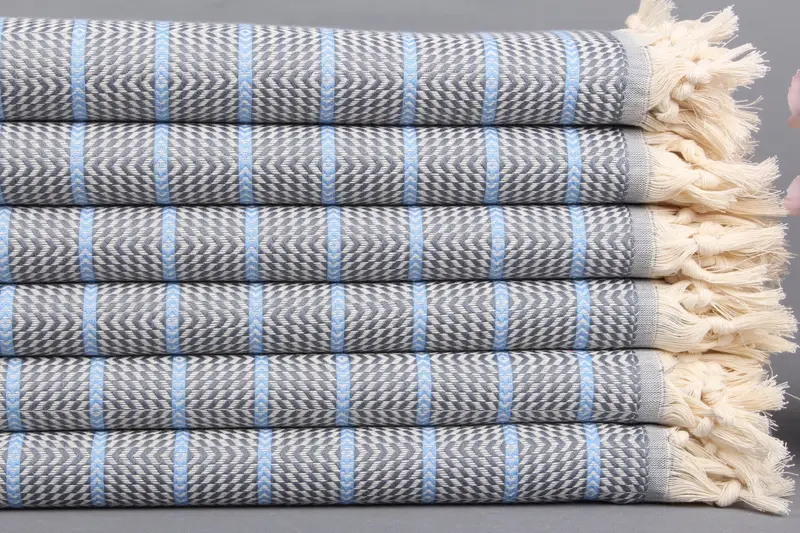 Türk Havlusu Plaj Havlusu, Koyu Gri-Mavi, Çizgili, Organik Pamuk, 40x71 İnç