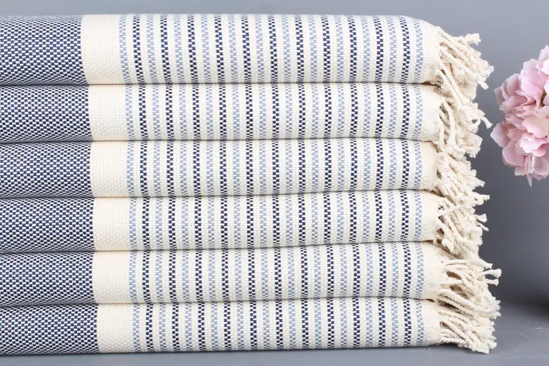 Düğün Hediyesi Lacivert-Gri Peştemal Havlu, Geometrik, 40x71 İnç