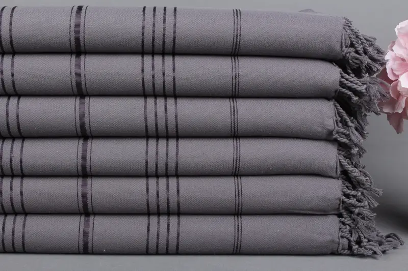 Kişiye Özel Organik Pamuk Plaj Havlusu, Koyu Gri Peştemal, 40x71 İnç