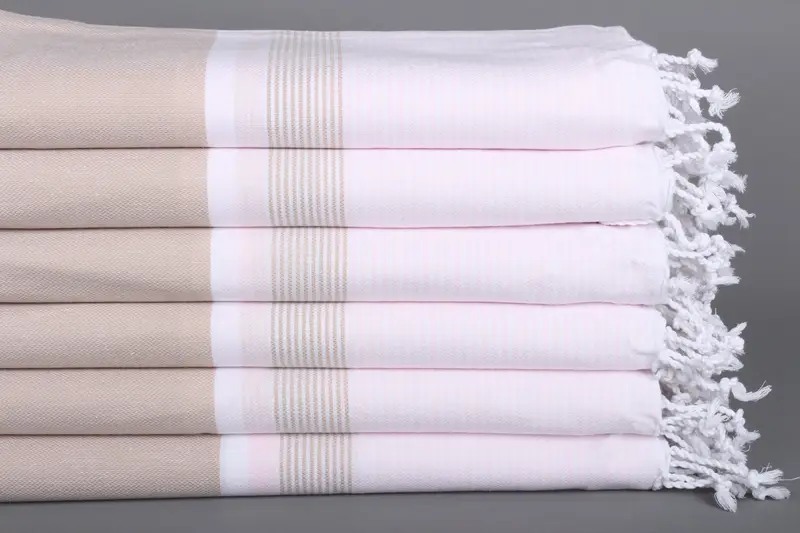 Çizgili Havlu Kişiye Özel Türk Pamuğu Bej-Pembe, 40x67 İnç