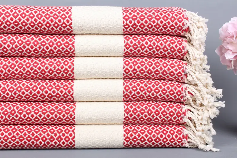 Kişiye Özel Türk Havlusu Organik Pamuk Kırmızı Pırlanta, 40x71 İnç