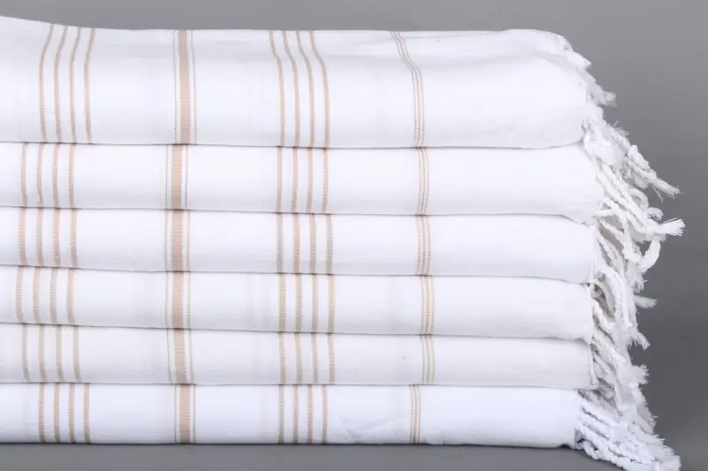 El Yapımı Hediyelik Bej Çizgili Pamuk Havlu, Türk Hamamı, 40x71 İnç
