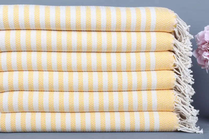 Türk Plaj Havlusu Koyu Sarı Chevron, Organik Pamuk, 40x71 İnç