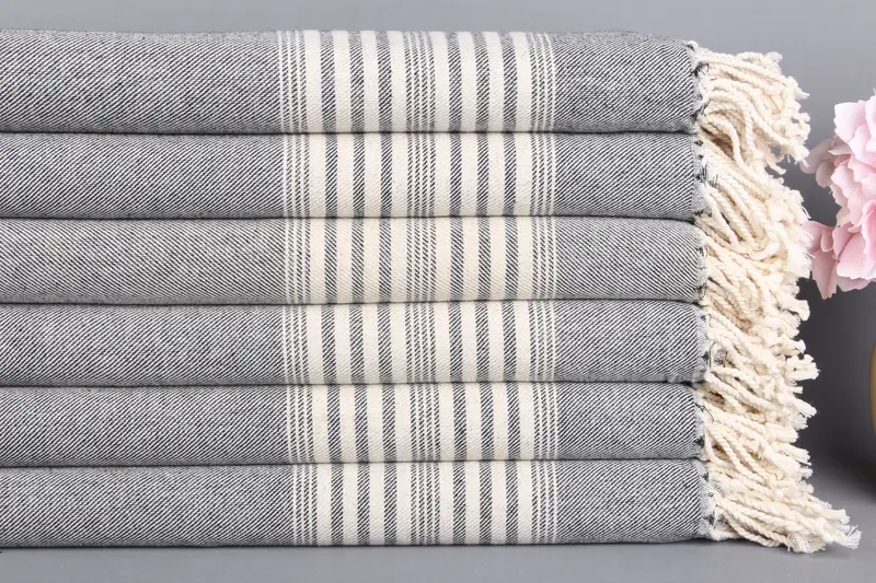 Kişiye Özel Türk Plaj Havlusu İşlemeli Organik Pamuk, Siyah, 40x71 İnç