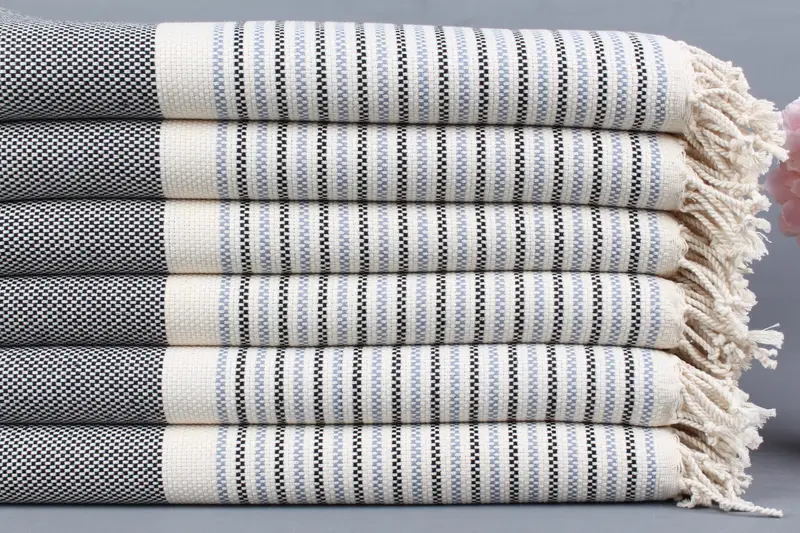 Türk Hamam Havlusu Organik Pamuk Siyah-Gri Geometrik, 40x71 İnç