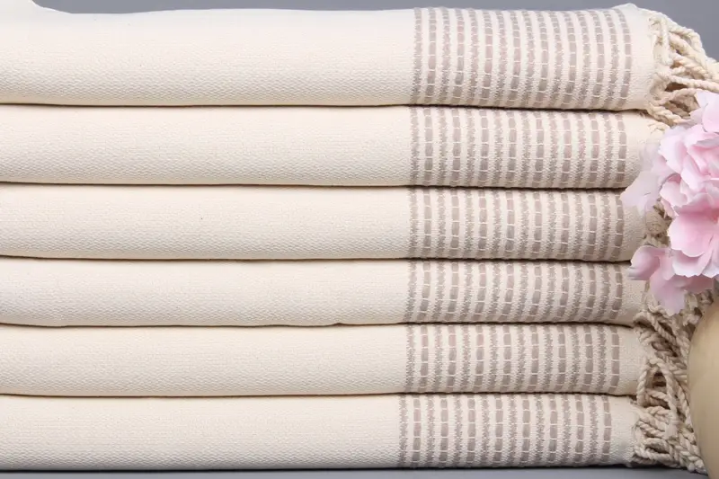 Turkish Towels Beach Kişiye Özel Açık Bej Çizgili, 36x69 İnç