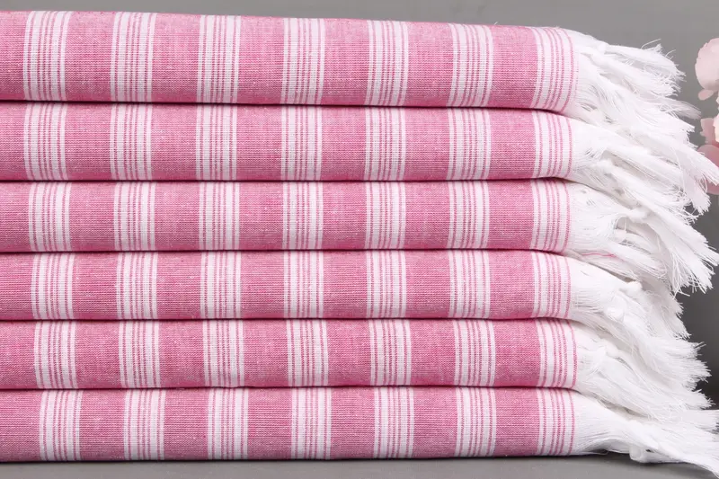 Türk Plaj Havlusu Organik Pamuk Fuşya Çizgili, 40x71 İnç