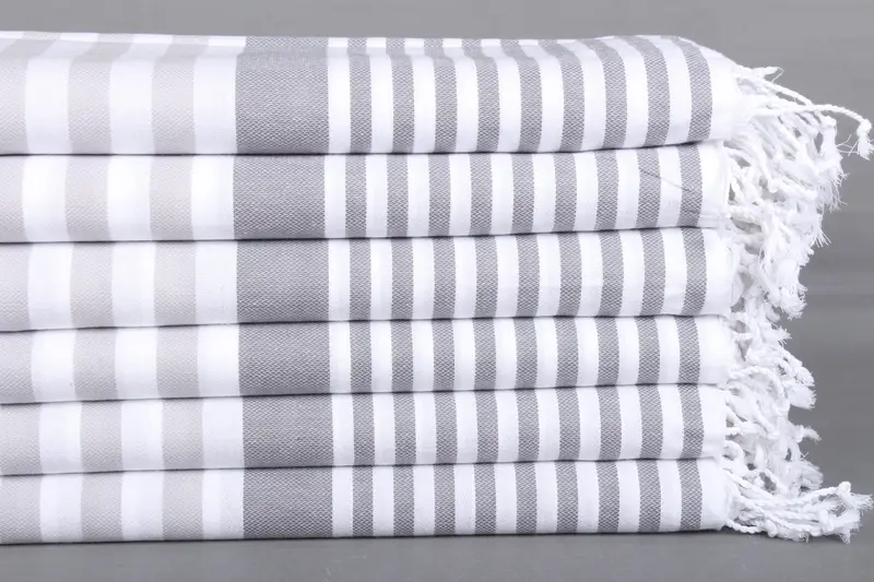 Çizgili Havlu Türk Organik Pamuk Açık Gri-Koyu Gri, 36x67 İnç