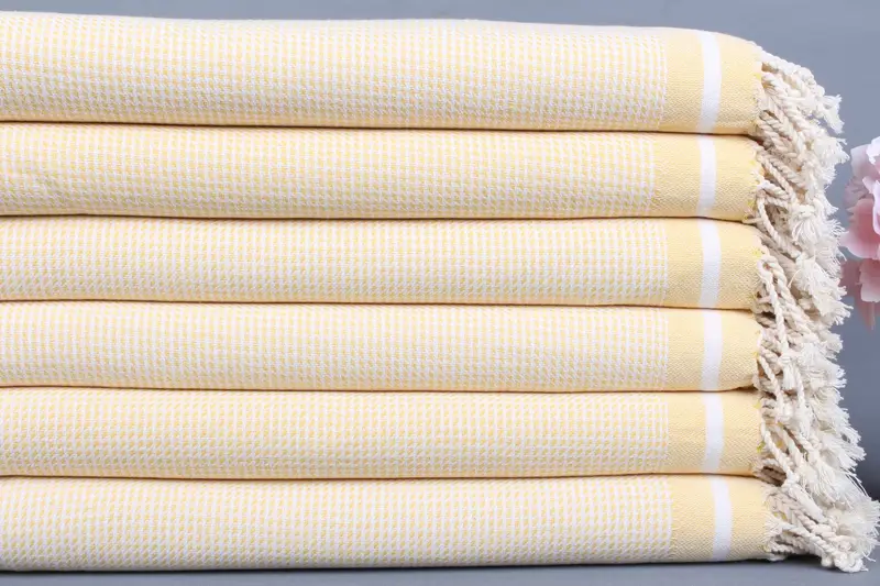 Kişiye Özel Türk Plaj Havlusu Sarı Şerit, Organik Pamuk, 36x71 İnç