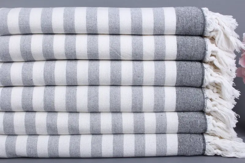 Kişiye Özel Siyah Çizgili Türk Havlusu Organik Pamuk, 40x67 İnç