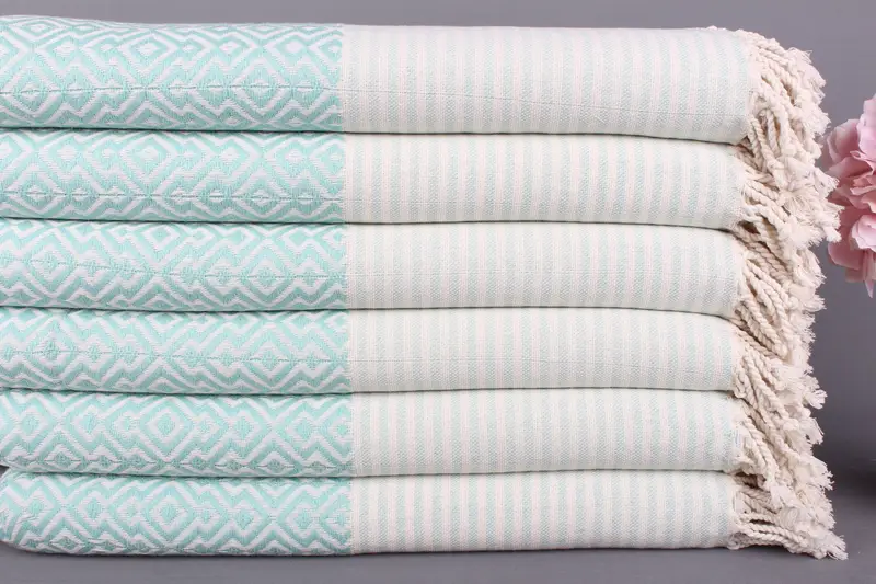 Türk Plaj Havlusu Organik Pamuk Nane, 38x75 İnç