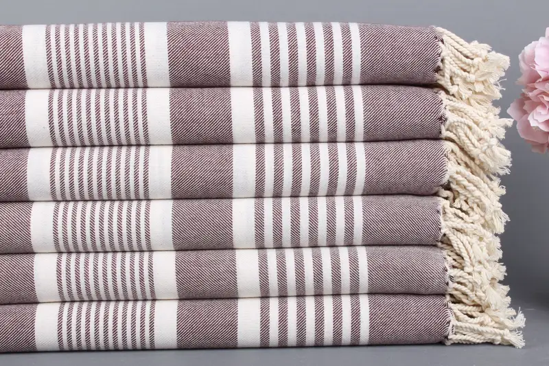Banyo Havlusu Kişiye Özel Türk Organik Pamuk Koyu Mor Çizgili, 38x67 İnç