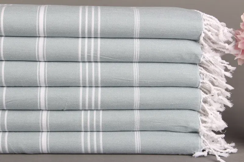Türk Hamam Havlusu İşlemeli Pastel Yeşil Şerit, 40x71 İnç