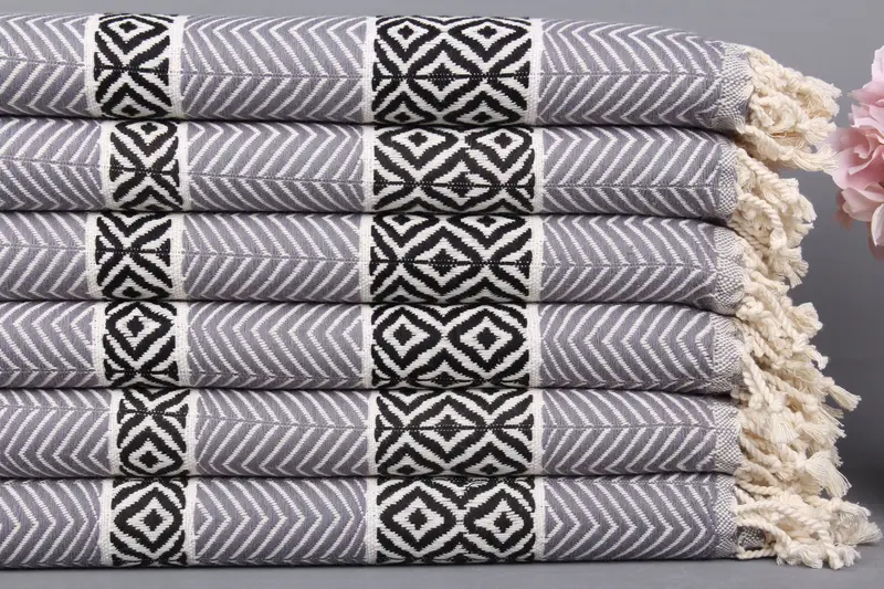 Organik Plaj Havlusu Organik Pamuk Koyu Gri-Siyah, 40x71 İnç
