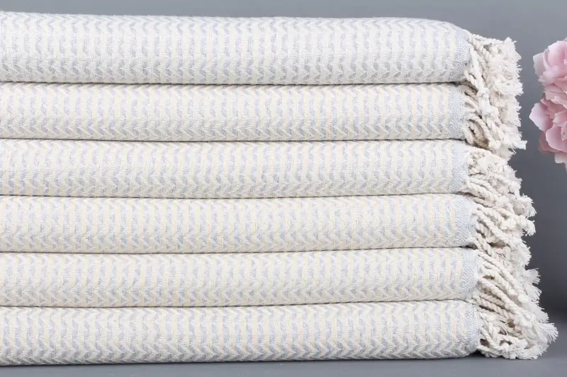 Açık Gri Peştemal Türk Plaj Havlusu Organik Pamuk, 40x71 İnç