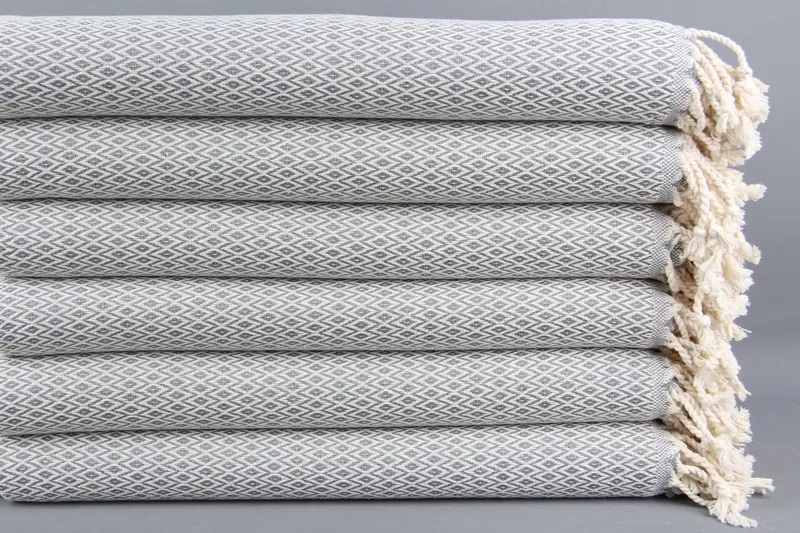 Türk Plaj Havlusu Gri Elmas İşlemeli Organik Pamuk, 40x71 İnç