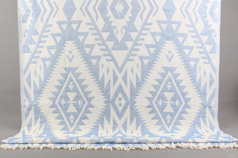 Türk Havlusu Organik Pamuk Açık Mavi Geometrik, 40x75 İnç