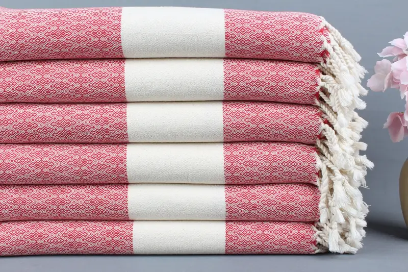 Türk Plaj Havlusu Organik Pamuk Kırmızı Elmas, 36x67 İnç