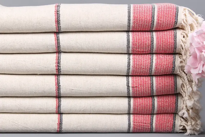 Türk Plaj Havlusu Organik Pamuk Kırmızı Çizgili, 36x71 İnç