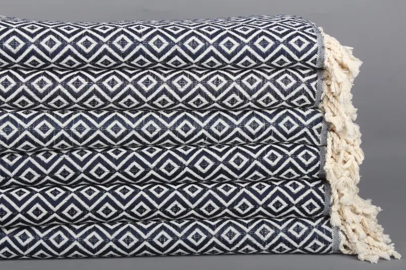 Doğum Günü Hediyesi Lacivert Pamuk Elmas Havlu, Türk Plaj Havlusu, 40x71 İnç