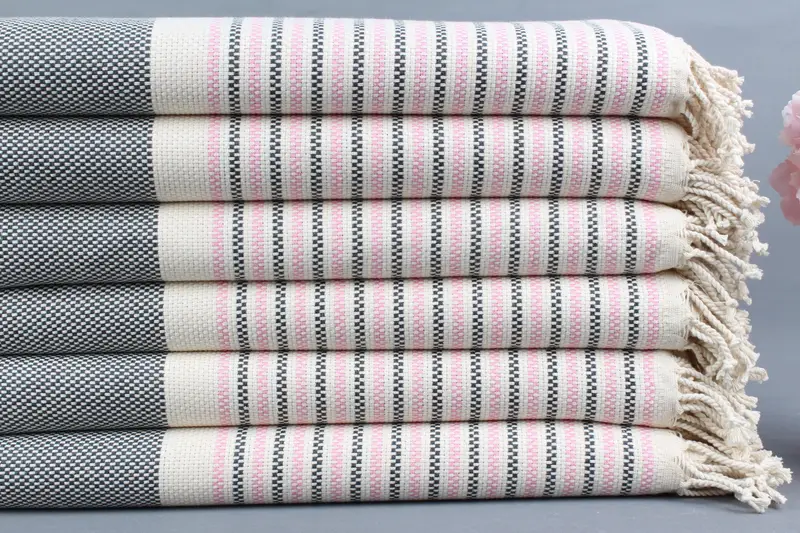Plaj Havlusu Kişiye Özel Türk Pamuğu Pembe-Gri Geometrik, 40x71 İnç