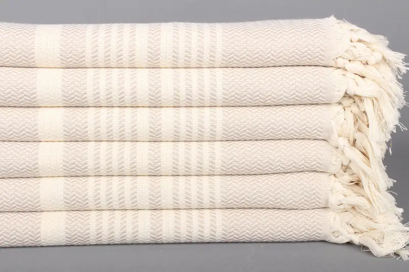 Plaj Havlusu Monogramlı Türk Pamuk Bej Çizgili, 40x71 İnç