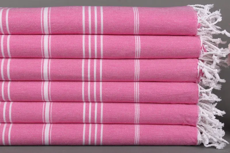 Türk Havlusu Plaj Kişiye Özel Açık Fuşya Çizgili, 40x71 İnç