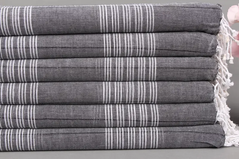 Organik Pamuk Türk Plaj Havlusu, Kişiye Özel, Siyah Çizgili, 38x71 İnç