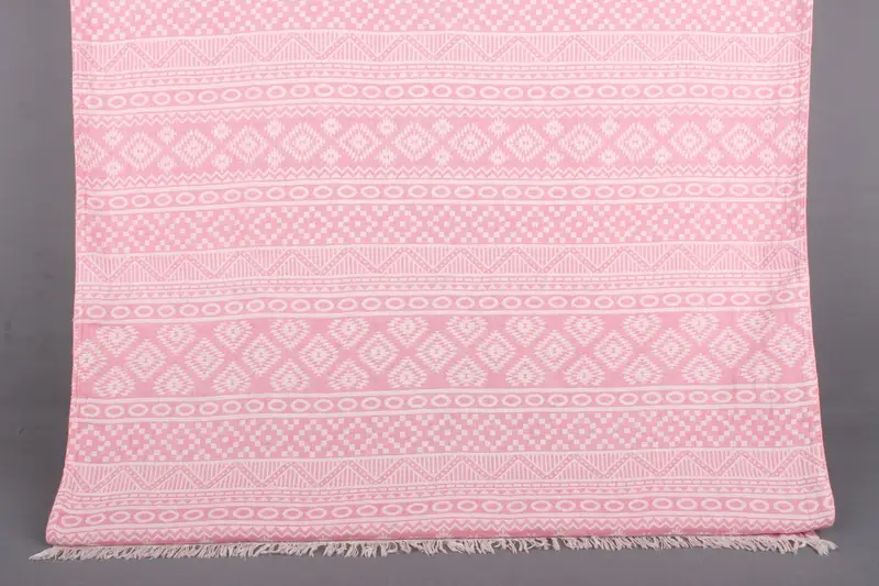 Türk Havlusu Plaj Pembe Pamuk Geometrik, 36x67 İnç