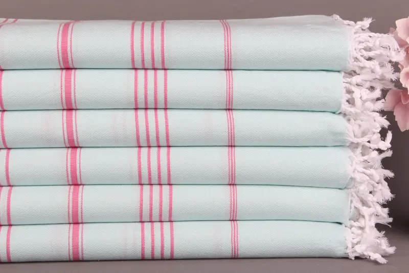 Monogram Plaj Havlusu Kişiye Özel Türk Pamuğu Nane-Pembe Çizgili, 40x71 İnç