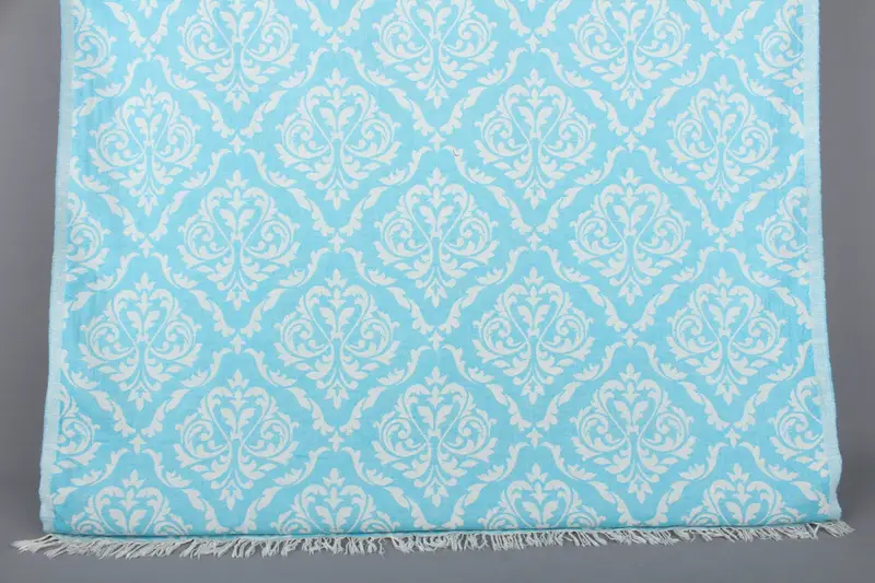 Türk Plaj Havlusu İşlemeli Organik Pamuk Turkuaz, 36x67 İnç