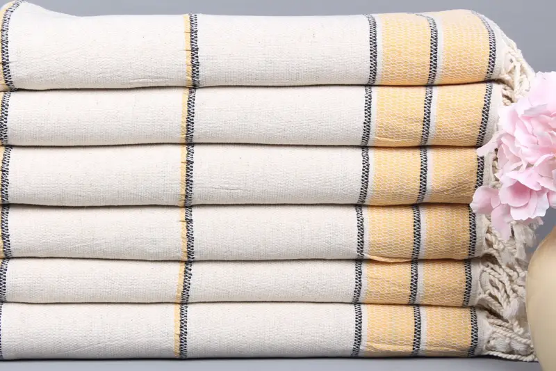 Kişiye Özel Türk Plaj Havlusu Organik Pamuk Hardal Çizgili, 36x71 İnç