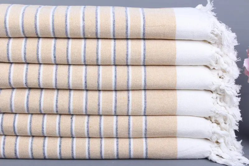 Organik Türk Havlusu Hardal Peştemal Çizgili, 39x65 İnç