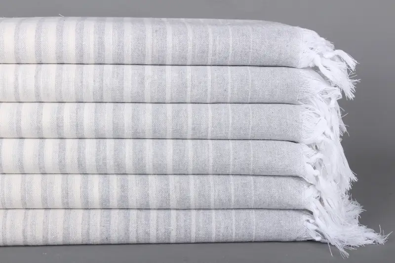 Açık Gri Pamuk Havlu Çizgili, Türk Plaj Havlusu, 40x69 İnç